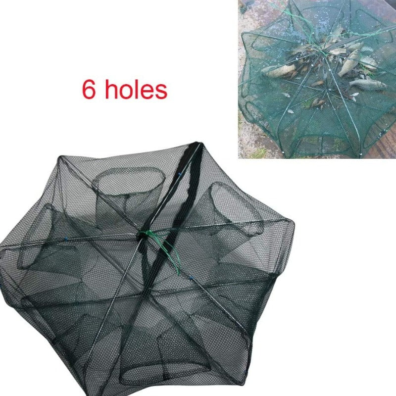 Portable 6 sides 6 Holes automatic telescopic fishing shrimp trap. convenient and simple. no need to install. easy to use; Just pull the string on the top and the net will be automatically opened.