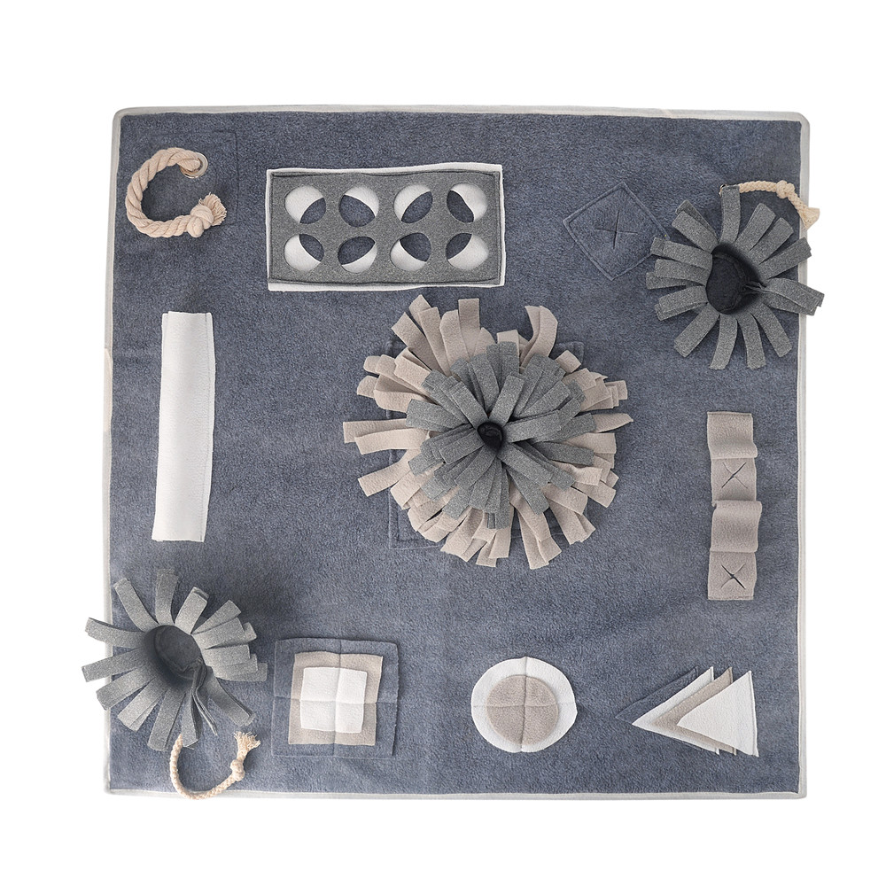 This dog puzzle toys for large dogs are a main fabric of felt fabric, very durable, resistant to abrasion, you do not worry thatthe teeth of dogs makes the fabric broken.